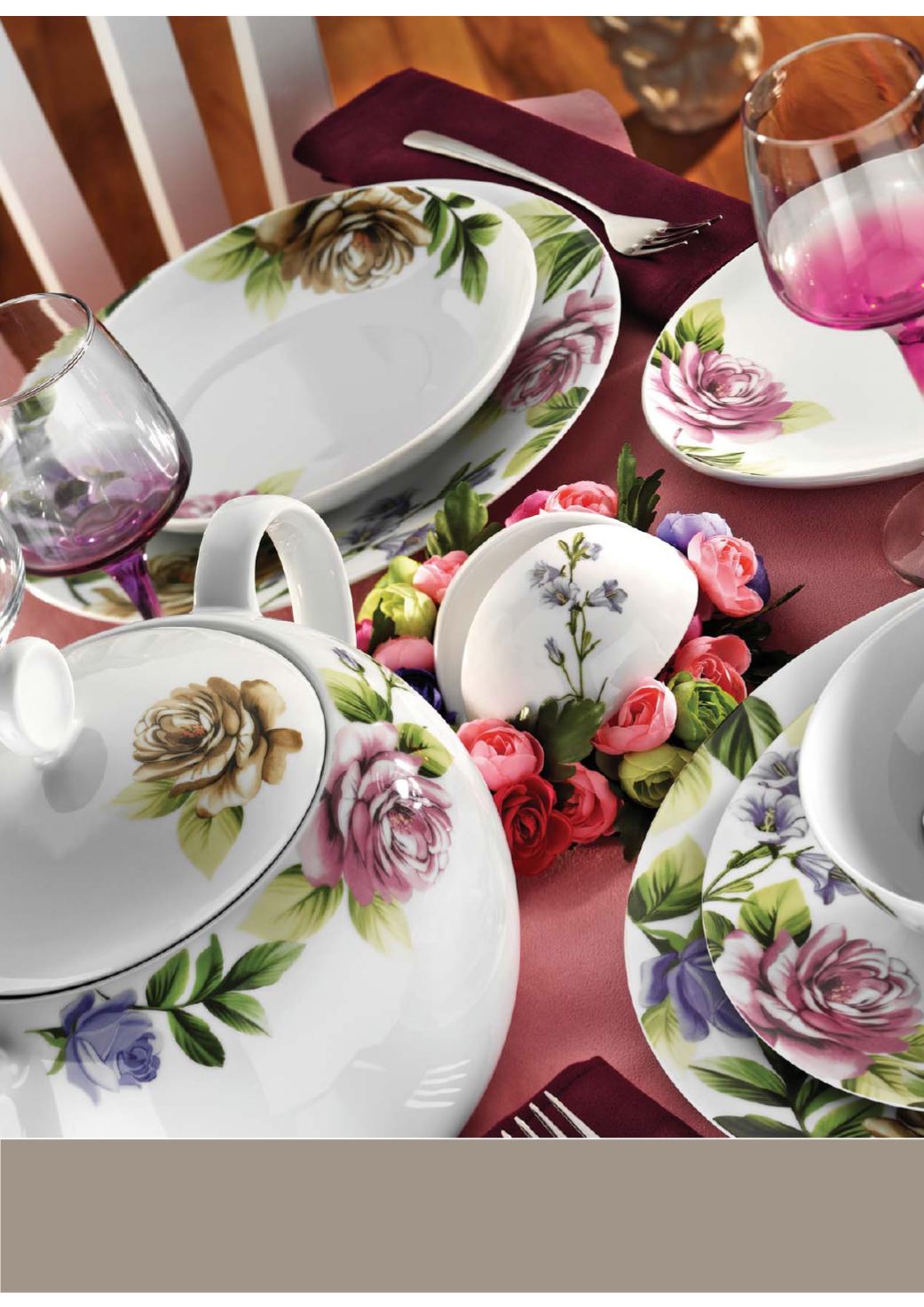 çiçek desenleri ve pastel renkleriyle bahar enerjisini sofralara taşıyor.