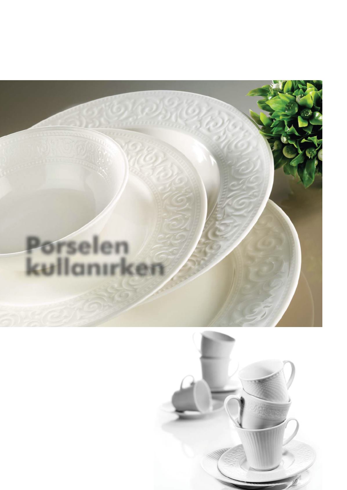 Krem renkli ‘Fine Porselen’ ürünler de beyaz porselen-